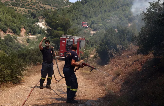Στη Ρόδο, η φωτιά έχει περιοριστεί σε δύσβατη περιοχή στις περιοχές Βάτι, Προφύλια και Ι.Μ Θάρρη