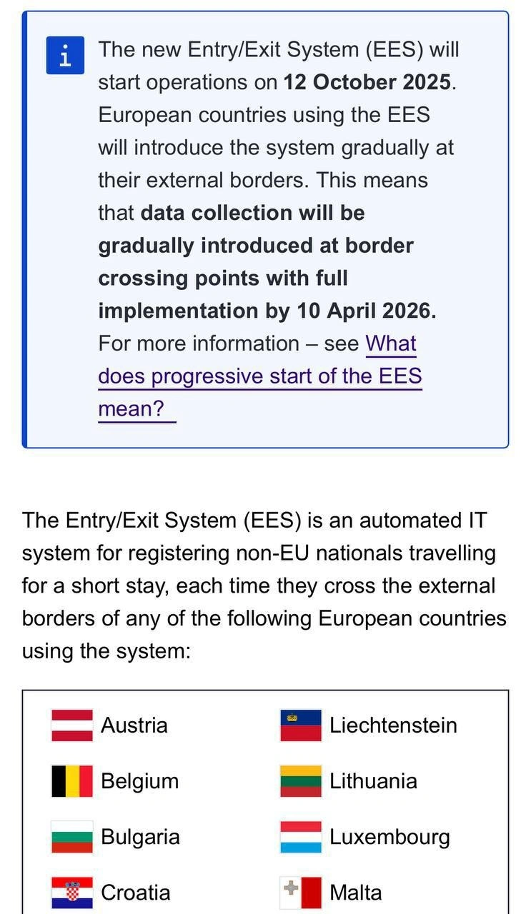 Τώρα, οι πολίτες χωρών εκτός ΕΕ θα πρέπει να υποβληθούν σε βιομετρική σάρωση και τα δεδομένα τους να καταχωρηθούν σε ειδική βάση δεδομένων, όπου θα αποθηκεύονται για τα επόμενα τρία χρόνια. Εάν ο ταξιδιώτης αρνηθεί να υποβληθεί σε σάρωση, θα του απαγορευτεί η είσοδος.