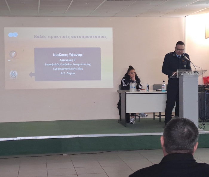 Κατά τη διάρκεια του σεμιναρίου, ο Επικεφαλής του Γραφείου Αντιμετώπισης Ενδοοικογενειακής Βίας του Αστυνομικού Τμήματος Λαμίας, Νικόλαος Υφαντής, ανέδειξε βασικές πτυχές της αυτοπροστασίας, δίνοντας έμφαση στη σημασία της ψυχολογικής ετοιμότητας και της αυτοπεποίθησης ως αποτρεπτικών παραγόντων σε πιθανά περιστατικά κινδύνου.