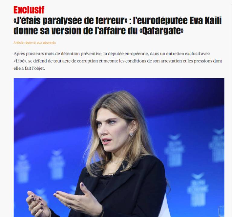 Έναν μήνα μετά την αποφυλάκισή της, η Εύα Καϊλή, μίλησε στην γαλλική εφημερίδα Liberation, δίνοντας τις δικές της εξηγήσεις για το τι συνέβη με το Qatargate.