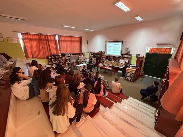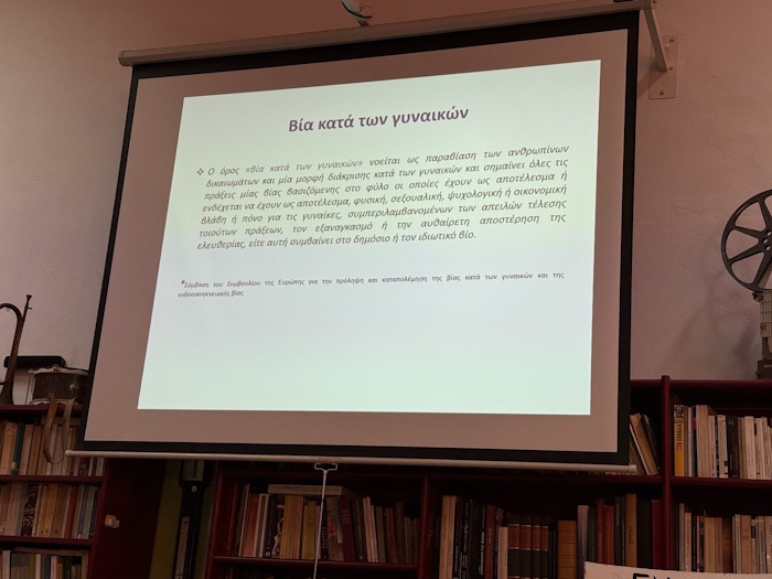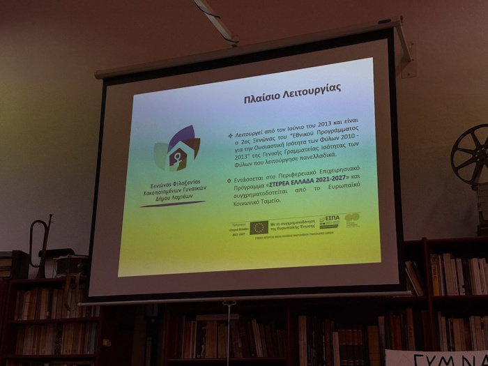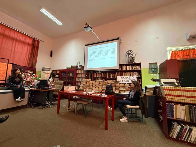 Η κ. Μαρία Μπάκου, κοινωνική λειτουργός, και η κ. Κωνσταντίνα Φλέγγα, παιδοψυχολόγος, μίλησαν στους μαθητές για τις μορφές της έμφυλης και ενδοοικογενειακής βίας, για τους τρόπους που μπορεί να επικοινωνήσει κάποιος που θέλει να ζητήσει βοήθεια ή να καταγγείλει κάποιο περιστατικό και για το έργο του ξενώνα και τη συμβολή του στην αντιμετώπιση των σοβαρών περιστατικών κακοποίησης γυναικών.