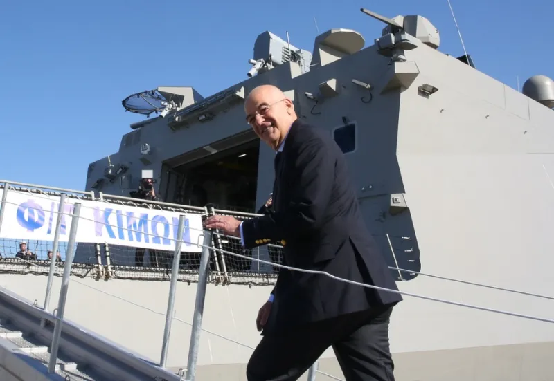 Τη φρεγάτα «Κίμων», που αποτελεί το πιο απτό δείγμα της αμυντικής συνεργασίας μεταξύ Ελλάδας και Γαλλίας, επισκέφθηκαν το πρωί του Σαββάτου ο Γάλλος πρόεδρος Εμανουέλ Μακρόν και ο πρωθυπουργός Κυριάκος Μητσοτάκης.