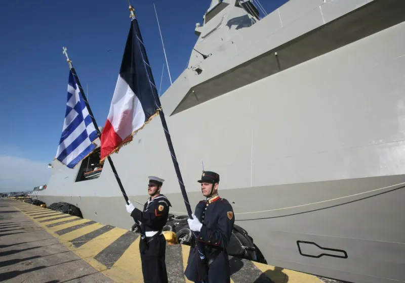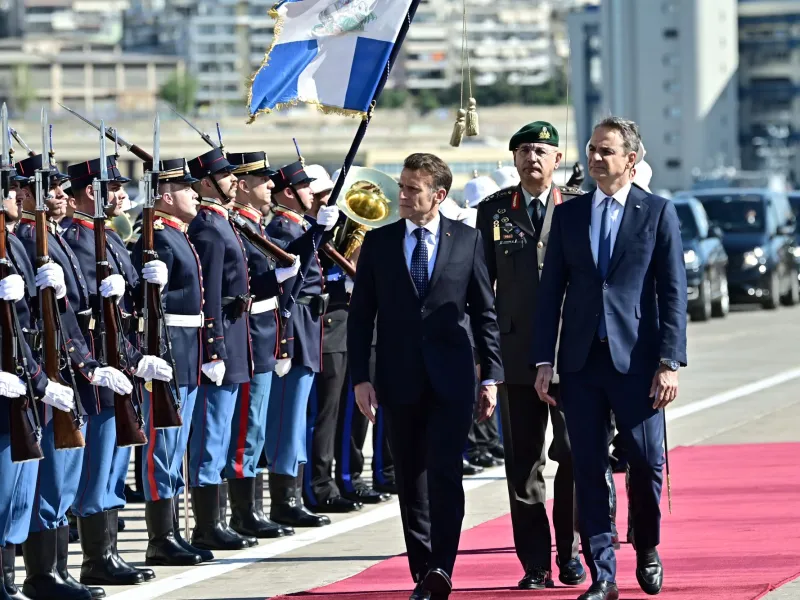 Τον Εμανουέλ Μακρόν υποδέχθηκε στις 10 το πρωί στο λιμάνι του Πειραιά, όπου βρίσκεται αγκυροβολημένη από χθες η φρεγάτα, ο Έλληνας πρωθυπουργός. Οι δύο ηγέτες επιβιβάστηκαν στο πολεμικό πλοίο μετά την επιθεώρηση του στρατιωτικού αγήματος και την ανάκρουση των εθνικών ύμνων, την ώρα που ζεύγος μαχητικών αεροσκαφών Rafale πετούσε στον αττικό ουρανό, μια στιγμή συγκίνησης και υπερηφάνειας.