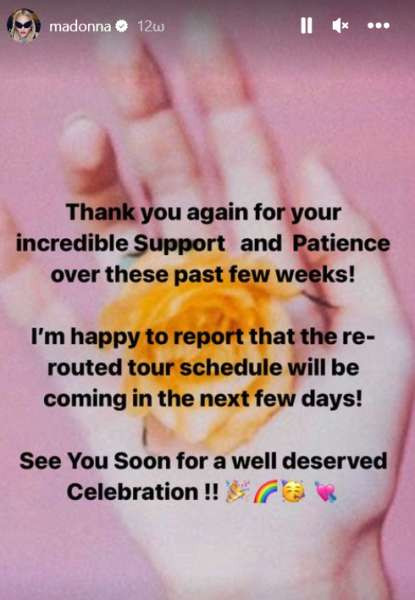 «Σας ευχαριστώ και πάλι για την απίστευτη υποστήριξη και την υπομονή σας αυτές τις τελευταίες εβδομάδες. Είμαι στην ευχάριστη θέση να αναφέρω ότι το πρόγραμμα για τις νέες ημερομηνίες θα ανακοινωθεί τις επόμενες ημέρες! Θα σας δούμε σύντομα για μια γιορτή που αξίζει!»
