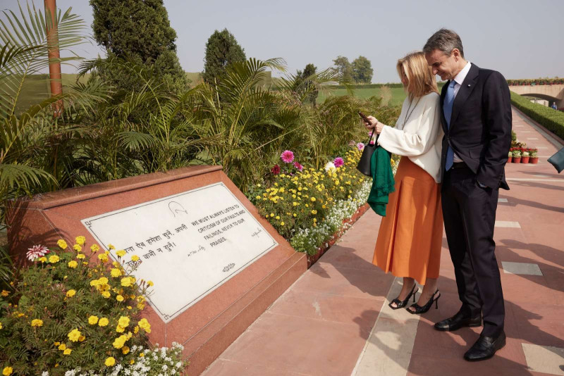 Στη συνέχεια, ο Πρωθυπουργός κατέθεσε στεφάνι στο μνημείο του Mahatma Gandhi και άφησε το δικό του μήνυμα στο βιβλίο επισκεπτών.