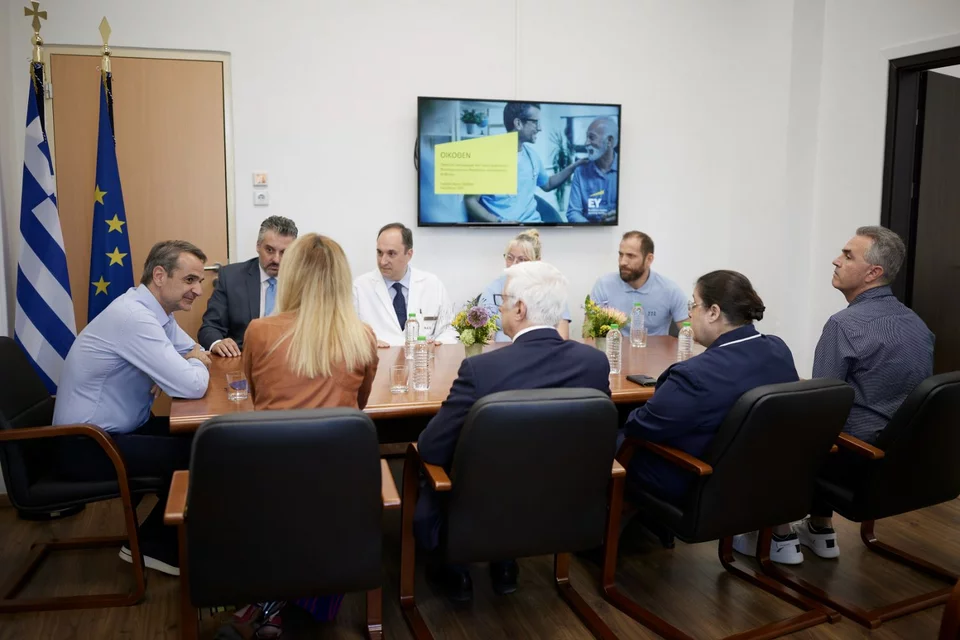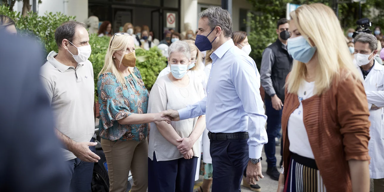 Συνομιλώντας με τη διοίκηση του νοσοκομείου αλλά και με τους γιατρούς και νοσηλευτές που συμμετέχουν στο πρόγραμμα «Οίκοθεν», ο Κυριάκος Ο Κυριάκος Μητσοτάκης εξέφρασε την ικανοποίησή του για το γεγονός ότι το πρόγραμμα αυτό, που χρηματοδοτείται από πόρους του Ταμείου Ανάκαμψης, ξεκινάει με ιδιαίτερα υψηλές προσδοκίες.