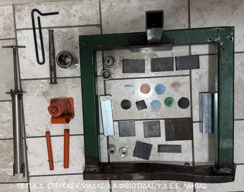 Κατασχέθηκαν επίσης ζυγαριές ακριβείας, χρηματικό ποσό, όπλα,