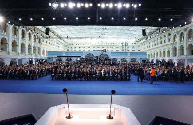 Λίγη ώρα πριν από την έναρξη της ομιλίας, τα κρατικά τηλεοπτικά δίκτυα μετέδωσαν στιγμιότυπα από τις τεχνικές προετοιμασίες για την ζωντανή μετάδοση με την πληροφορία ότι το live stream θα περάσει σε όλα τα μεγάλα ρωσικά τηλεοπτικά δίκτυα.