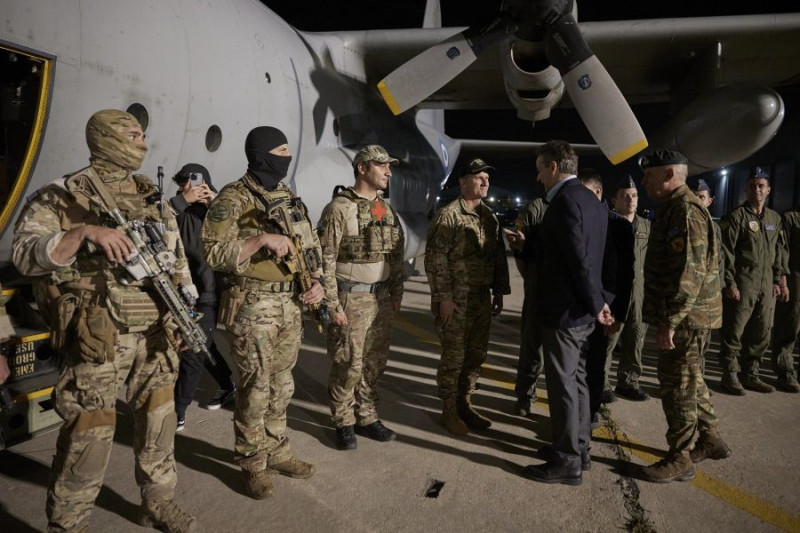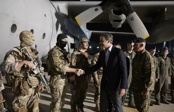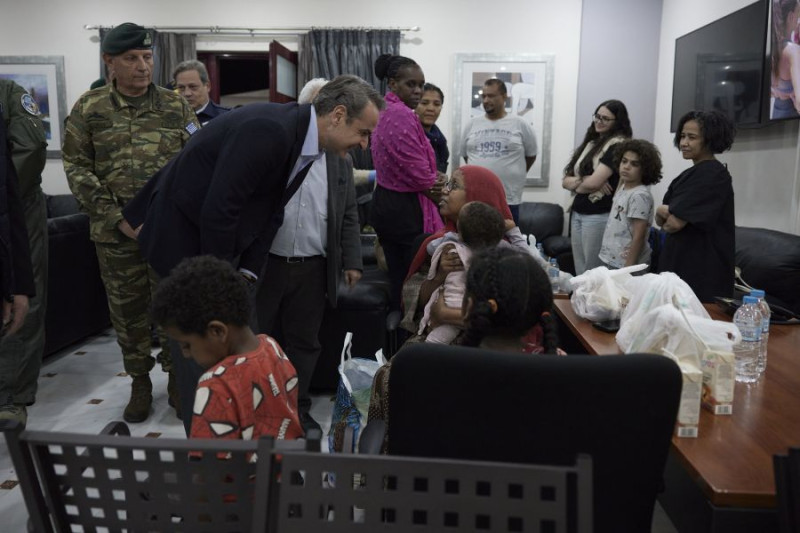 Στην Ελευσίνα βρέθηκε το βράδυ της Πέμπτης ο Κυριάκος Μητσοτάκης, όπου προσγειώθηκε το αεροσκάφος που μετέφερε 20 Έλληνες και 19 ξένους διασωθέντες από το Σουδάν, όπου ο εμφύλιος μαίνεται.