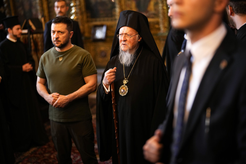 Ο Ζελένσκι, ο οποίος συναντήθηκε με τον Τούρκο πρόεδρο Ρετζέπ Ταγίπ Ερντογάν το βράδυ της Παρασκευής, μετέβη σήμερα το πρωί στην έδρα του Οικουμενικού Πατριαρχείου στην Κωνσταντινούπολη, σύμφωνα με δημοσιογράφους του Γαλλικού Πρακτορείου (AFP).