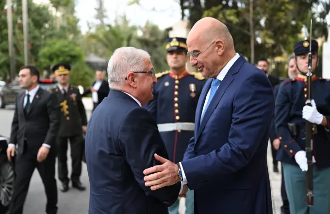 Ολοκληρώθηκε η συνάντηση μεταξύ των υπουργών Άμυνας Ελλάδας και Τουρκίας στη Λέσχη Αξιωματικών Ενόπλων Δυνάμεων, στο πλαίσιο του 5ου Ανώτατου Συμβουλίου Συνεργασίας.