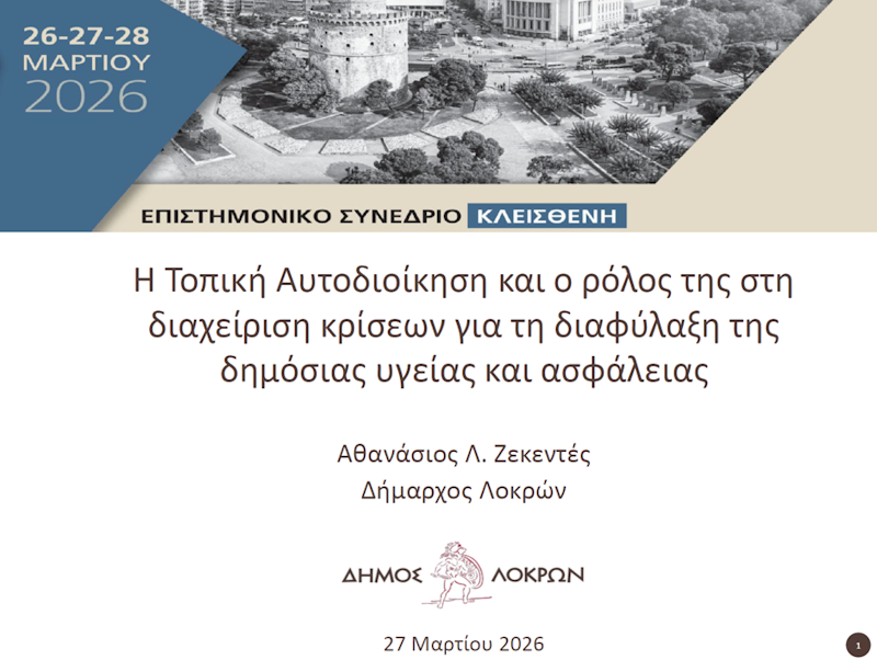 παρουσιάζοντας τον ρόλο της αυτοδιοίκησης στη διαχείριση κρίσεων και στη διαφύλαξη της δημόσιας