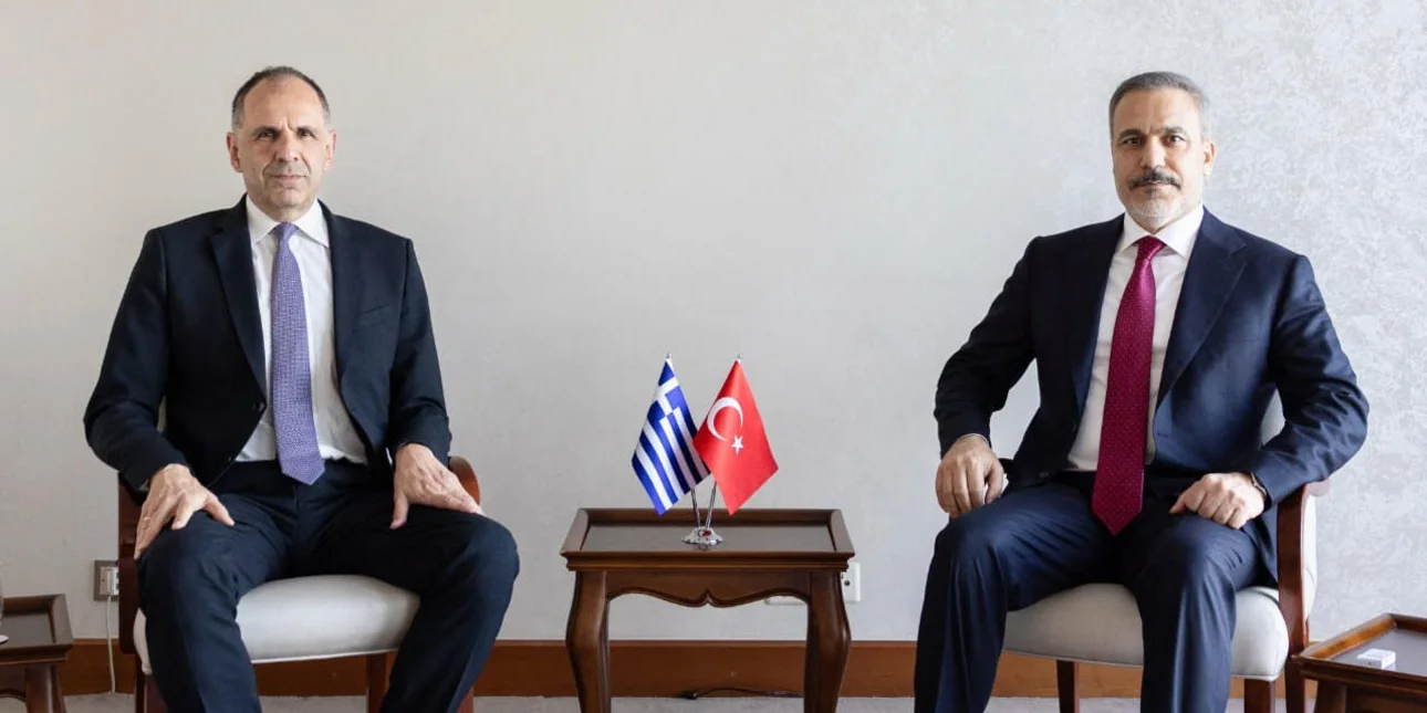 Με τον Τούρκο ομόλογό του Χακάν Φιντάν συζήτησε ο υπουργός Εξωτερικών Γιώργος Γεραπετρίτης, στο περιθώριο της πενταμερούς συνάντησης για το Κυπριακό στη Γενεύη.