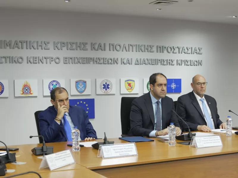 - Σε αυξημένη ετοιμότητα έχουν τεθεί ακόμα οι αρμόδιες υπηρεσίες των Υπουργείων Υγείας, Υποδομών και Μεταφορών, Περιβάλλοντος και Ενέργειας, Εργασίας και Κοινωνικής Ασφάλισης, Πολιτισμού, καθώς και Αγροτικής Ανάπτυξης και Τροφίμων.